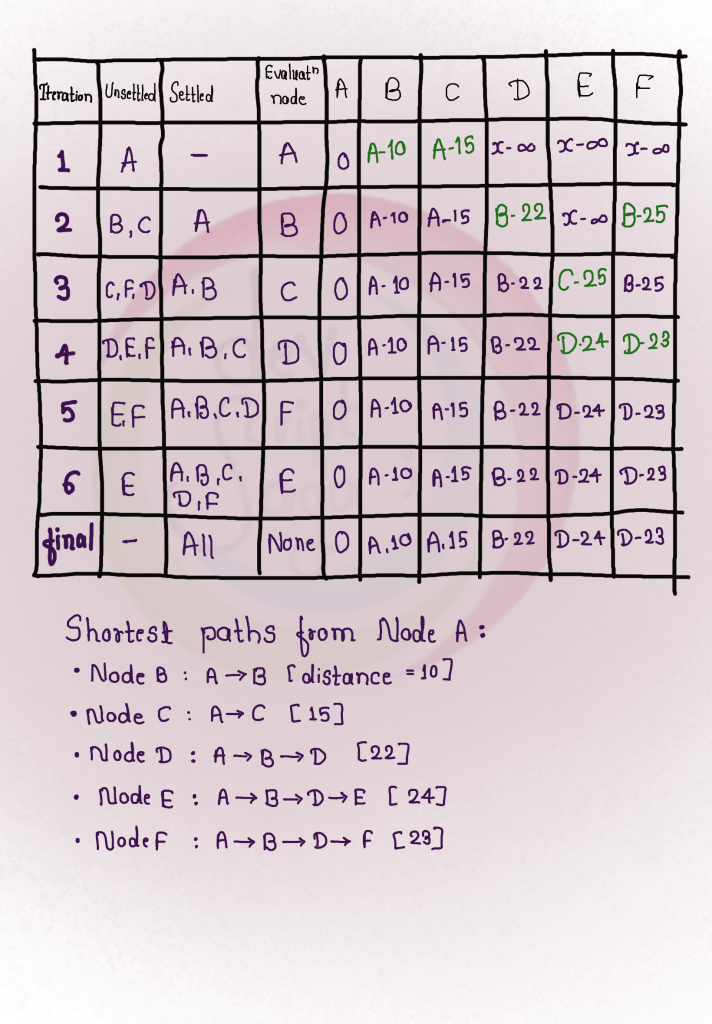 Settled nodes are those with a known minimum distance from the source. Whereas Unsettled nodes set gathers nodes that we can reach from the source but we don’t know the minimum distance from starting node.